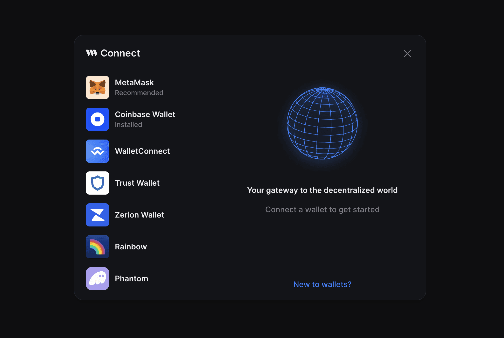 ConnectWalletcomponent anywhere in your application. Refer to Props to see the configuration options available